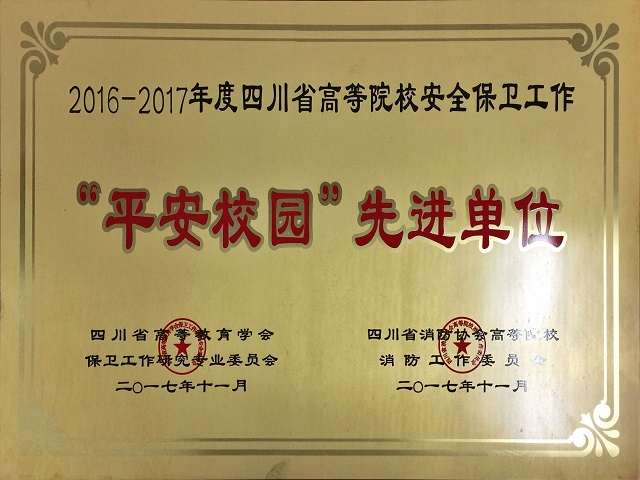 2017年11月16日,四川省高等院校“平安校园”建设表彰大会在绵阳召开。会上,我院被评为2016—2017年度四川省高等院校安全保卫工作“平安校园”建设先进单位。