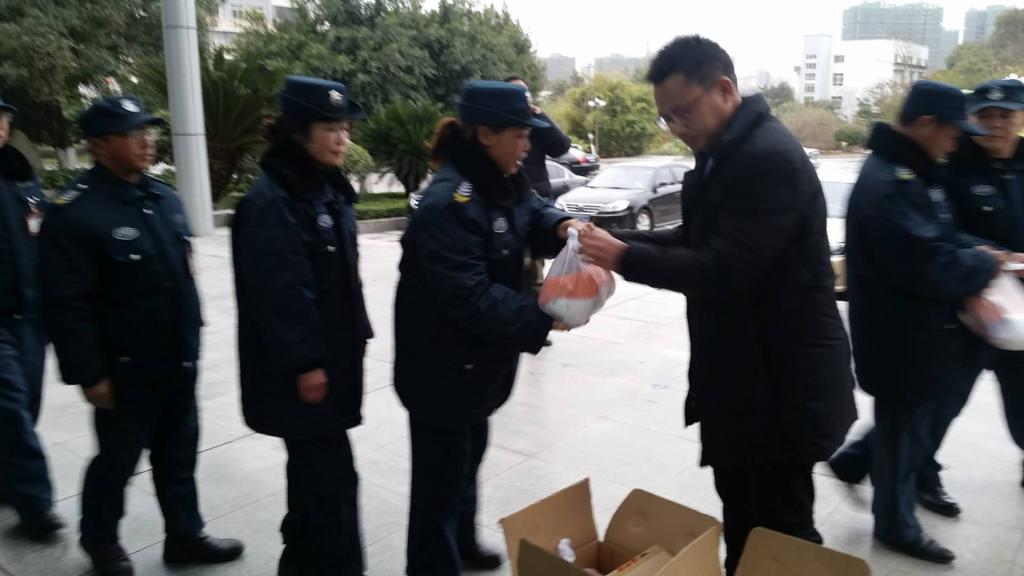 2月10日上午,副院长胥长寿到校看望慰问春节和寒假期间坚守岗位的安保人员,为他们送去节日的祝福。保卫处处长徐志军、治安科科长曾大志等陪同。