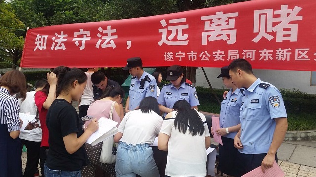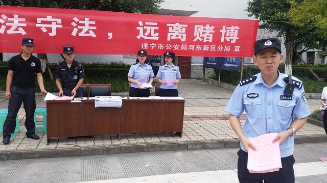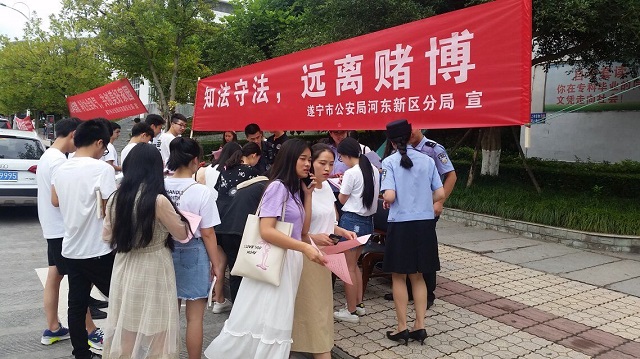 2018年6月15日下午,遂宁市公安局河东新区分局干警到我院开展“远离赌博”宣传活动。