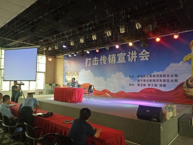 6月21日下午15:30,学院与遂宁市工商局河东新区分局、公安局河东新区分局在大学生活动中心联合举办了打击传销宣讲会,200余名师生代表接受了金融安全知识教育。