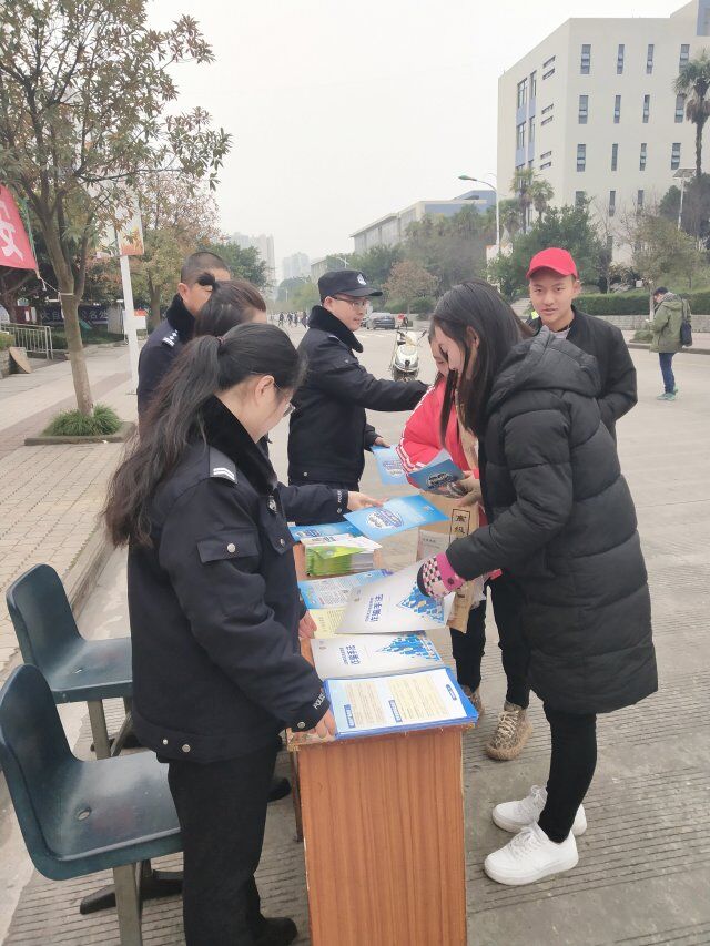 2019年1月3日下午,保卫处联合河东公安分局在校园开展“警民携手防诈骗、齐心协力创平安”主题宣传活动。河东公安分局治安大队教导员唐智勇等干警热情为师生进行安全防范讲解,共计发放宣传资料2000余份。