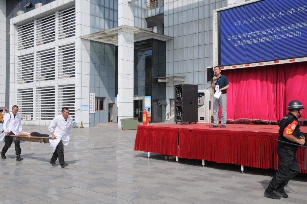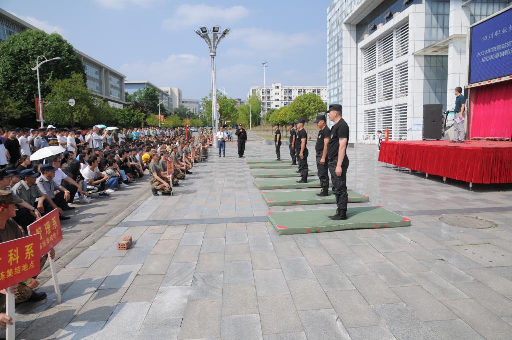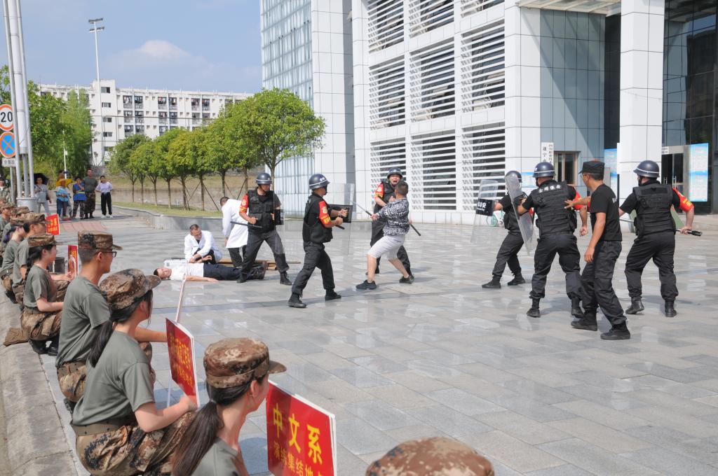 为切实保障师生人身安全,及时处置侵害师生安全的恶性事件,增强在真实情景下的心理素质和反恐防暴意识,提高师生应对能力。5月22日下午,在遂宁市公安局反恐处指导下,学院组织应急防暴组、金辉保安公司处突大队、以及部分教职工和学生开展反恐防暴模拟演练活动。遂宁市公安局国保支队副支队长许兵、反恐处处长何新军、交警一大队王杨等专家莅临指导。