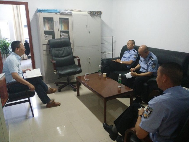 2019年6月3日上午,慈音派出所所长王国宏一行到学院检查指导校园安全稳定工作,处长徐志军带领相关科室同志陪同调研。