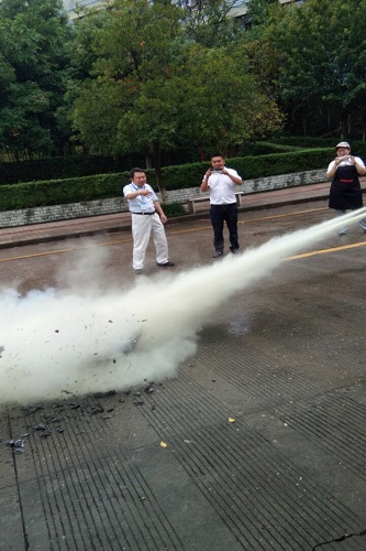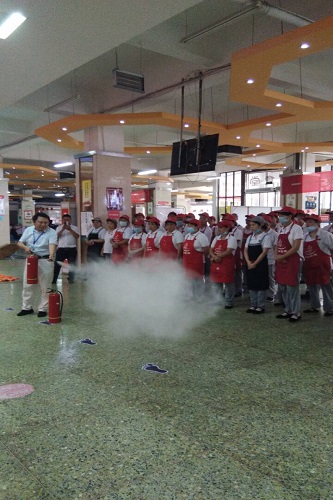 曾科长就消防工作的由来;食堂怎样预防火灾事故发生;发生火灾后如何自救逃生以及“一懂三会”的相关内容进行了详细的讲解;并现场示范了灭火器、消火栓、疏散指示、应急灯的检查、使用方法。食堂工作人员认真听取了讲解,随后在子昂路段进行了消防实战演练,班、组长亲身体验了用灭火器扑灭火源。