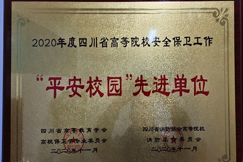 2020年11月26日,四川省高等院校2020年度疫情防控经验交流会暨年度会议在宜宾职业技术学院召开。会上,我院被评为四川省高等院校安全保卫工作“平安校园”建设先进单位。