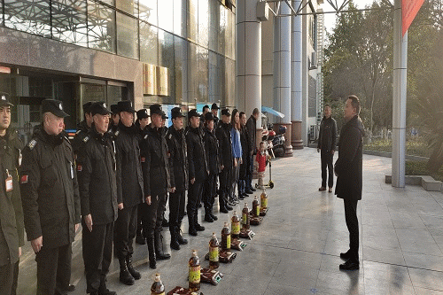 胥长寿代表学校党委和行政对值班的保卫人员以及全体驻校保安送上了亲切的问候和新春的祝福,感谢大家为维护学院安全稳定所做出的贡献,勉励值班人员坚守岗位,认真履行职责,严格疫情防控,确保寒假期间校园平安和谐、安全稳定。