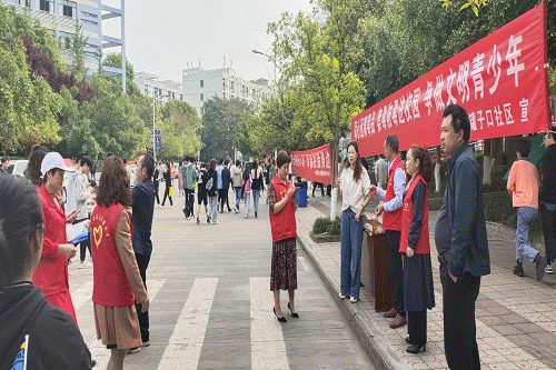 2021年4月22日上午,遂宁市慈音街道罐子口社区一行来到我院,与保卫处在校园环形路上联合开展了“同心远离毒品,禁毒防毒进校园,争做文明青少年”为主题的预防毒品宣传教育活动。