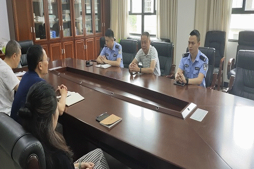 2021年6月3日上午,遂宁市公安局河东新区分局副局长银波带领慈音派出所所长张晓龙及相关干警等一行到我院调研政治保卫、反恐防暴及校园治安防范工作。
