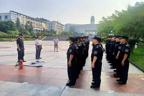 为加强安保队伍建设,提高校园安全保障和应急处突能力,根据工作计划安排,保卫处校卫队组织全体驻校保安于2021年7月14日上午,在升旗广场开展了岗位大练兵活动,并对假期校园治安保卫工作进行了安排和布置。