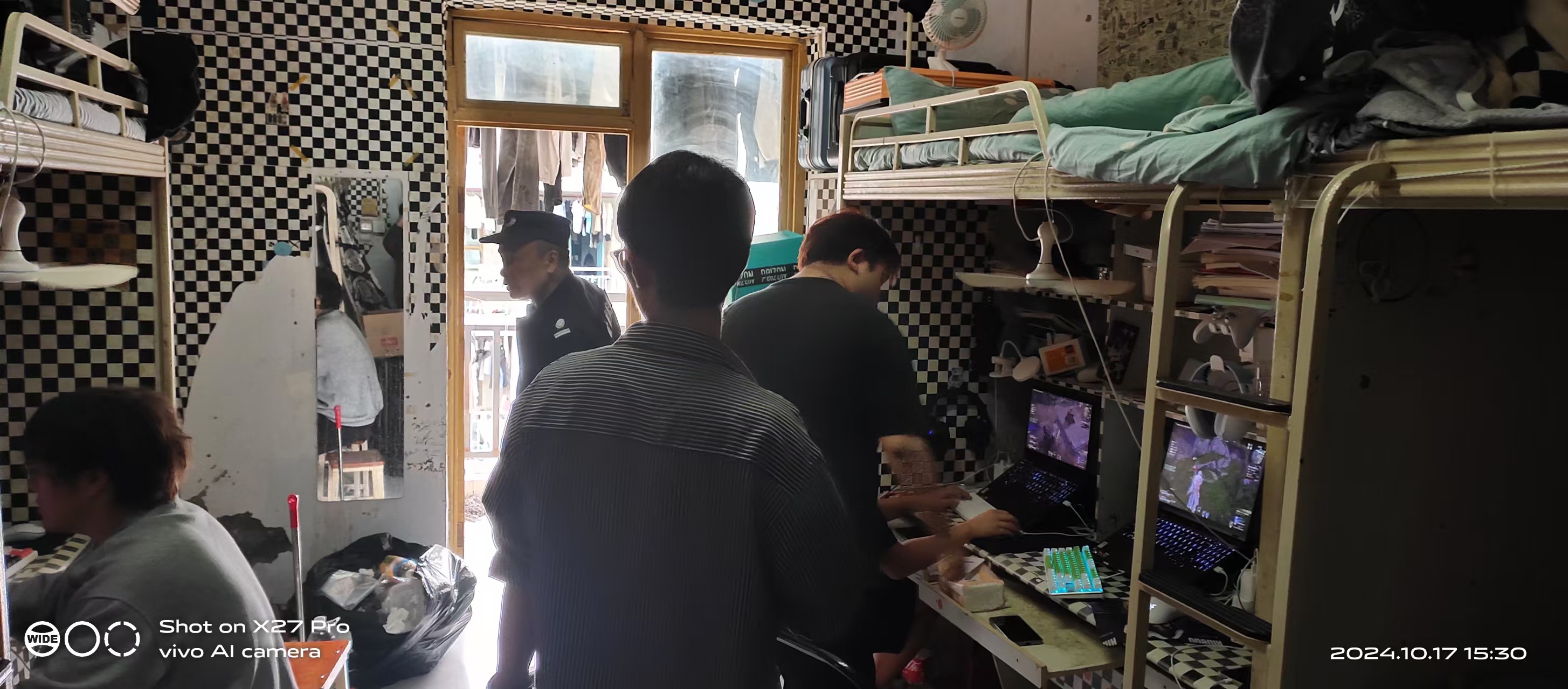 10月17日下午,安全保卫处、学工部联合二级学院以及驻校民警开展了学生公寓专项大检查。